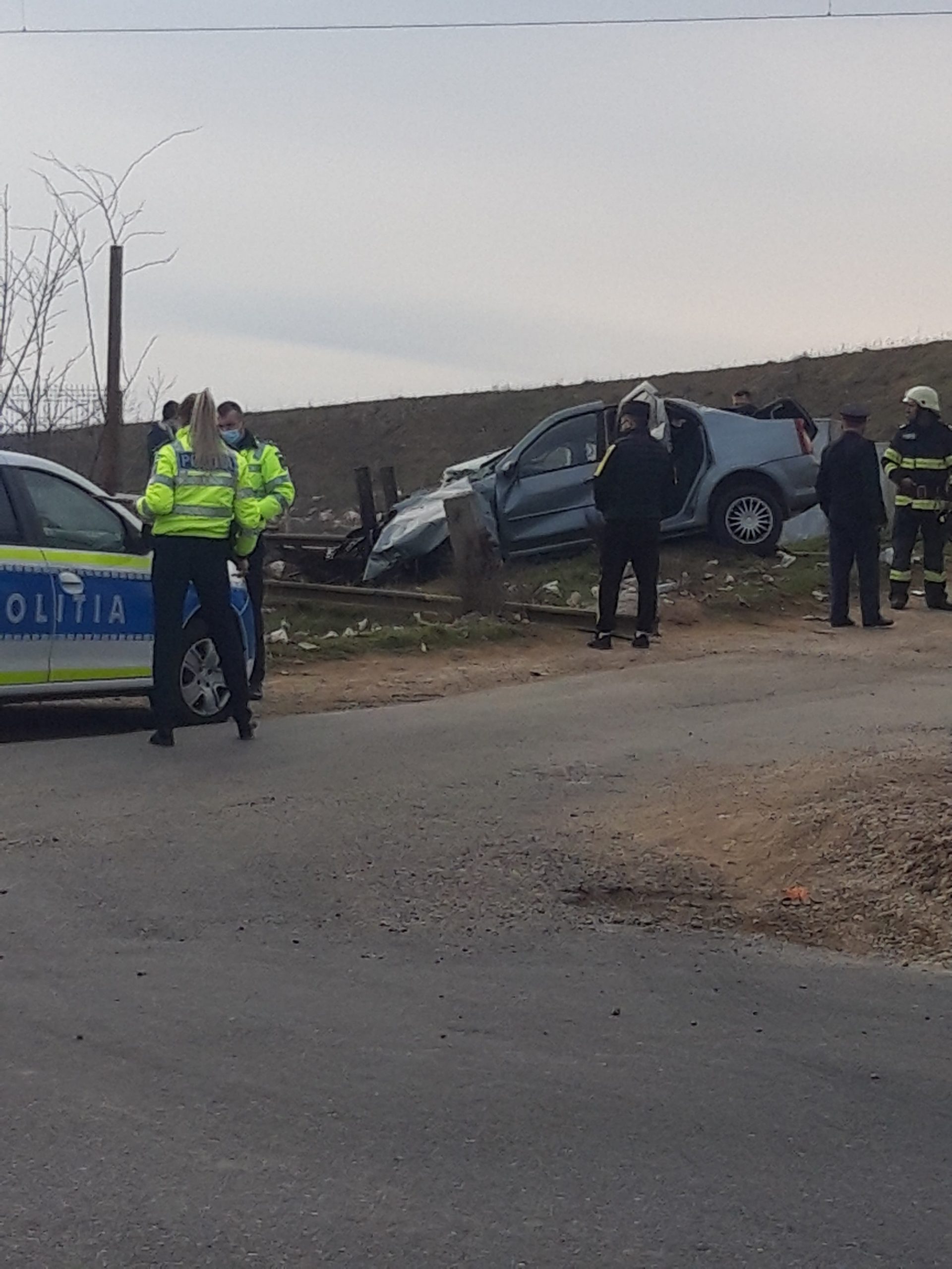 Incidentul s-a petrecut în această dimineaţă, în jurul orei 9:30. Şoferul autoturismului marca Dacia Logan, nu s-a asigurat la traversarea liniei de cale ferată, fiind lovit în plin de către un tren.