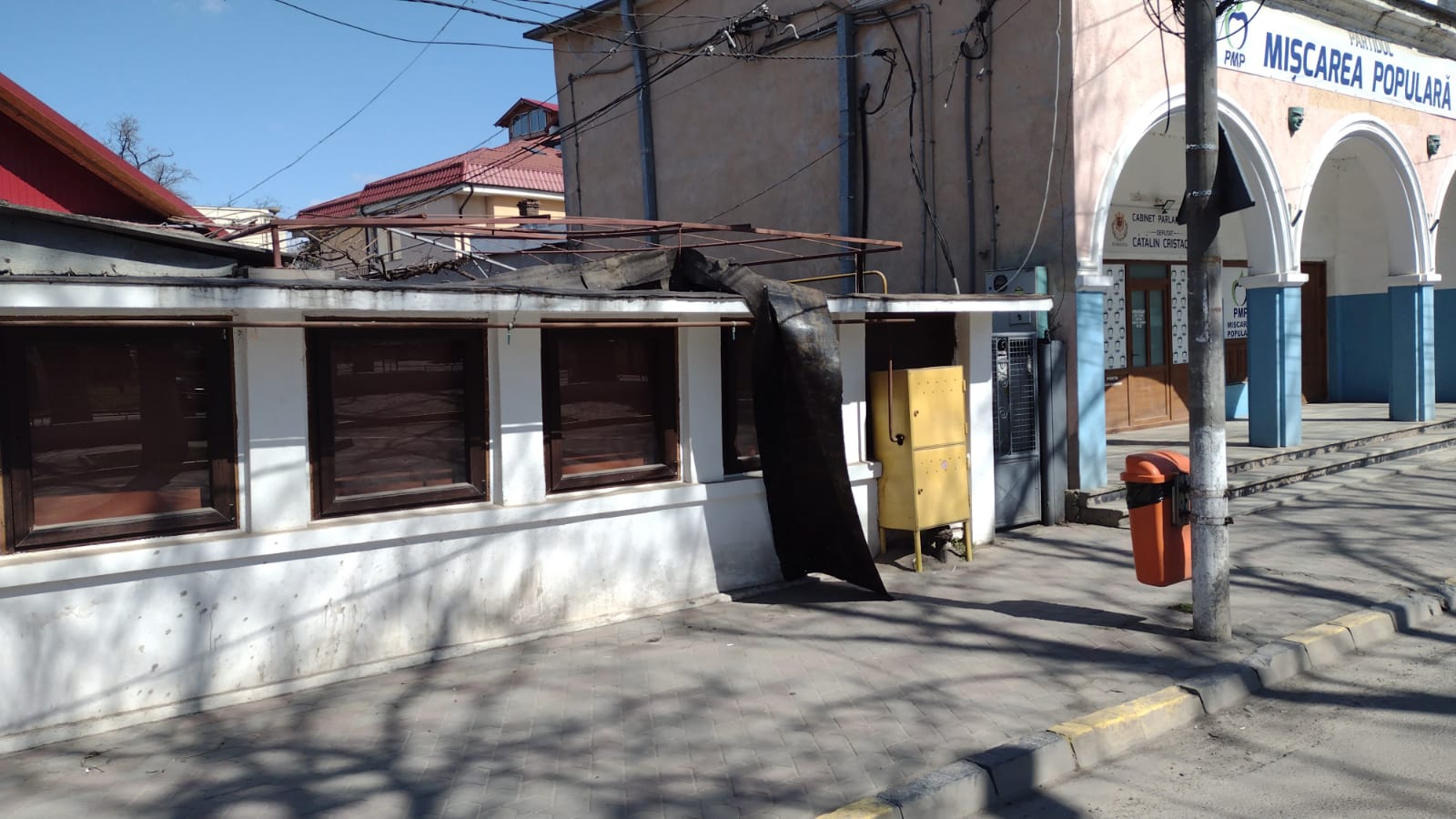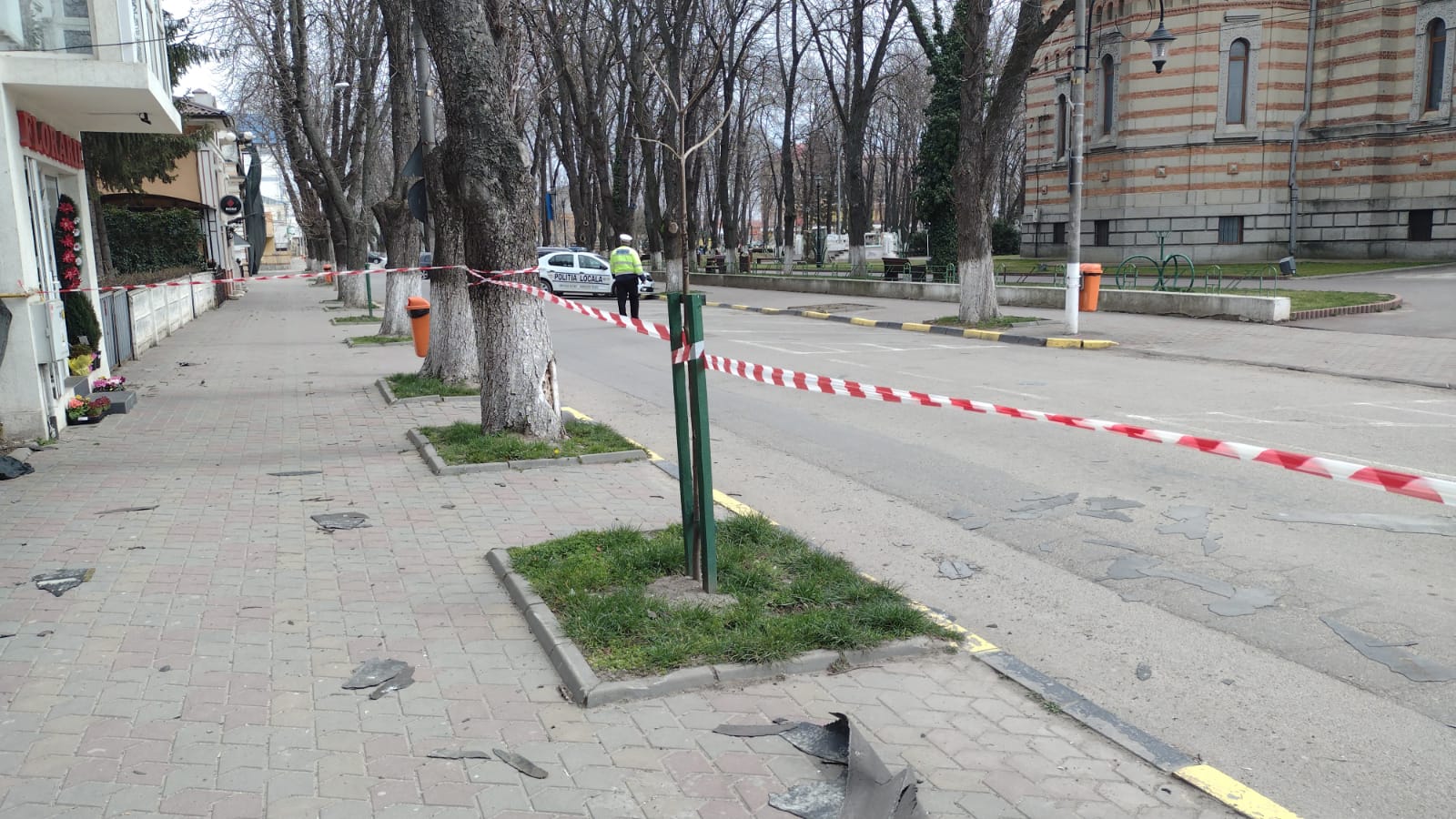 Perimetrul clădirii a fost securizat de către un echipaj din cadrul Poliţiei Locale Tecuci pentru a evita orice pericol pentru pietoni.