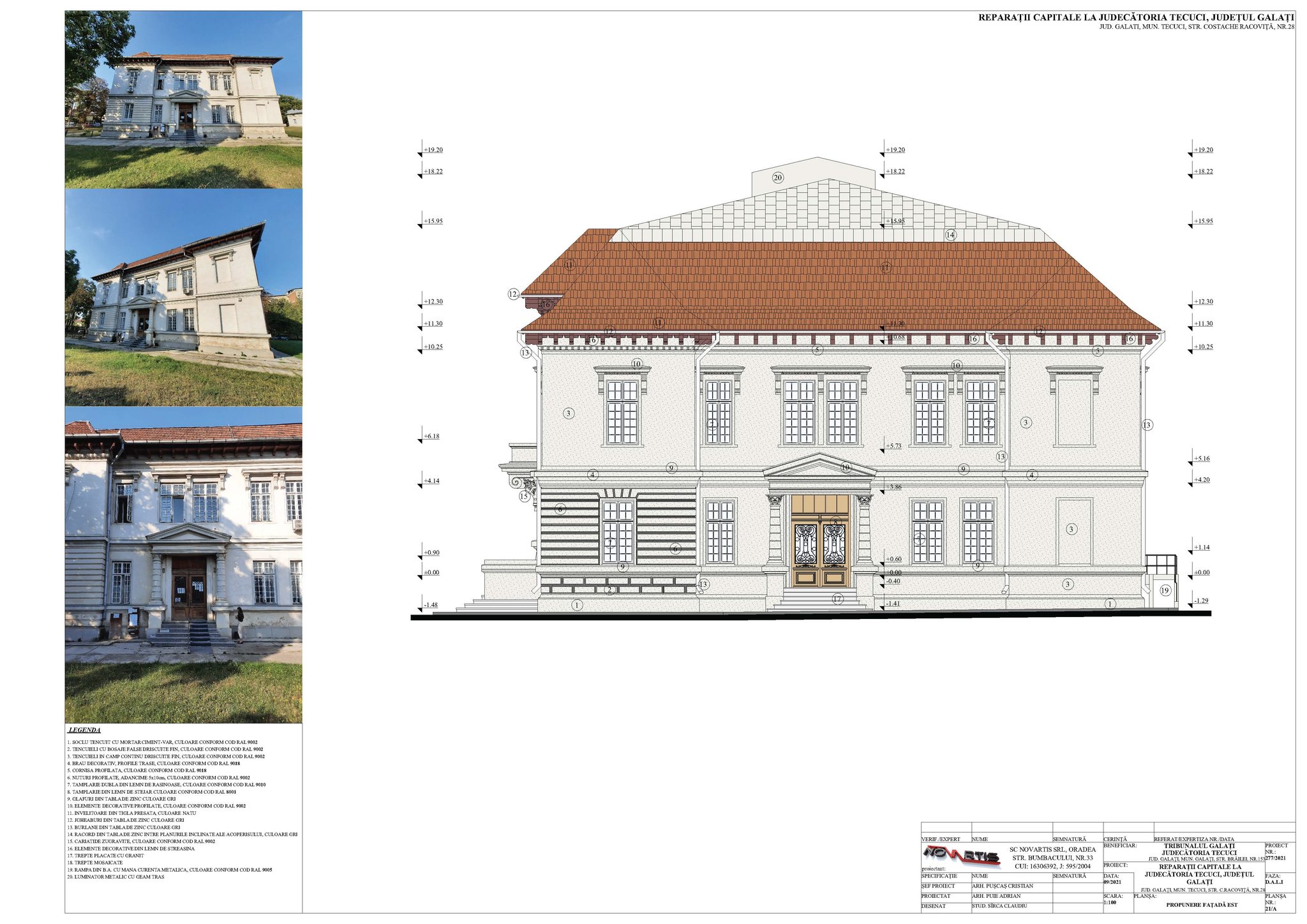 La exterior, vor fi puse în valoare elementele decorative deosebit de frumoase ale clădirii (cariatide, brâu, acoperiș). La finalul lucrărilor, sediul instanței va redeveni o clădire emblematică a municipiului Tecuci, una dintre cele mai frumoase din oraș.