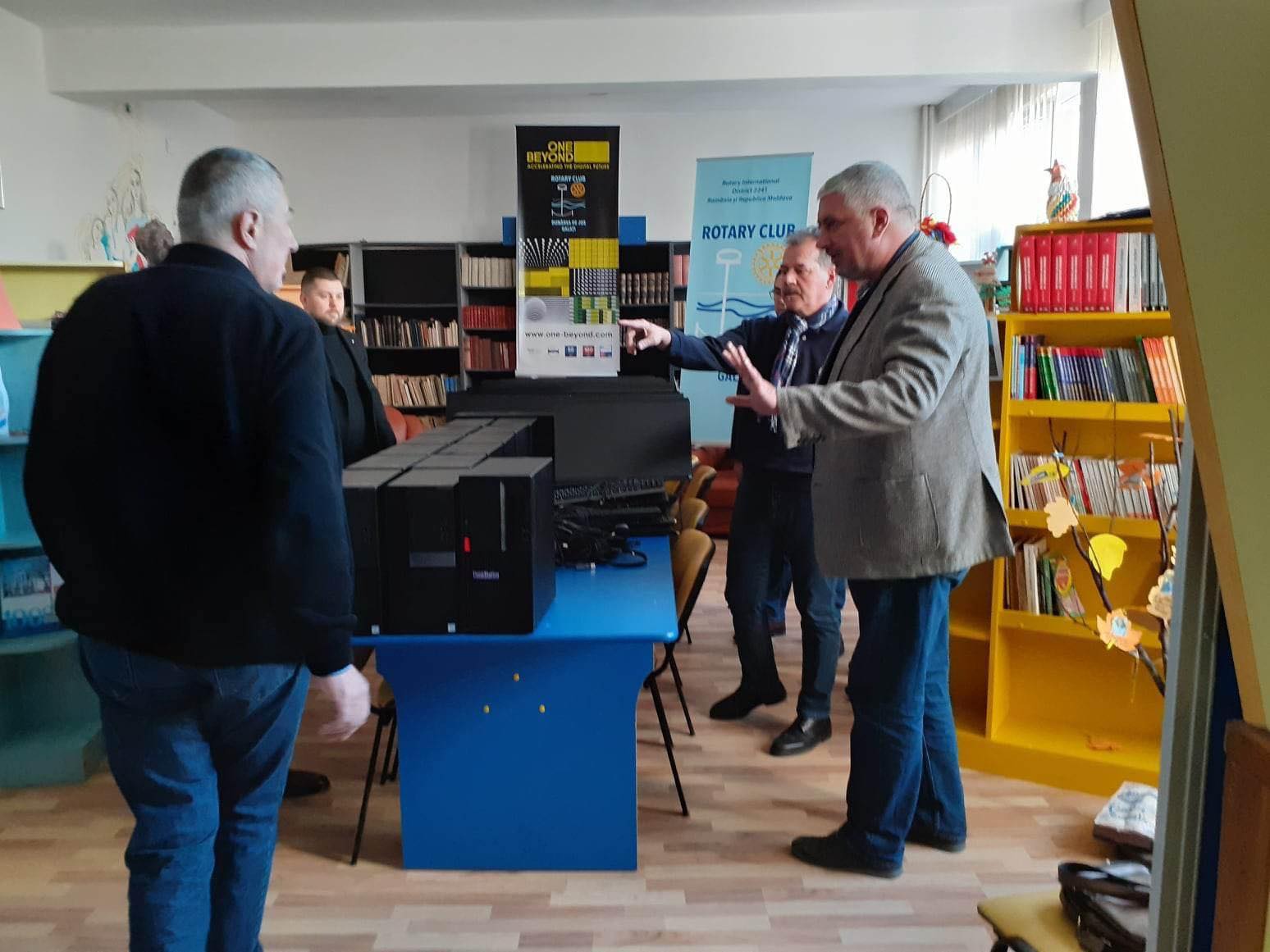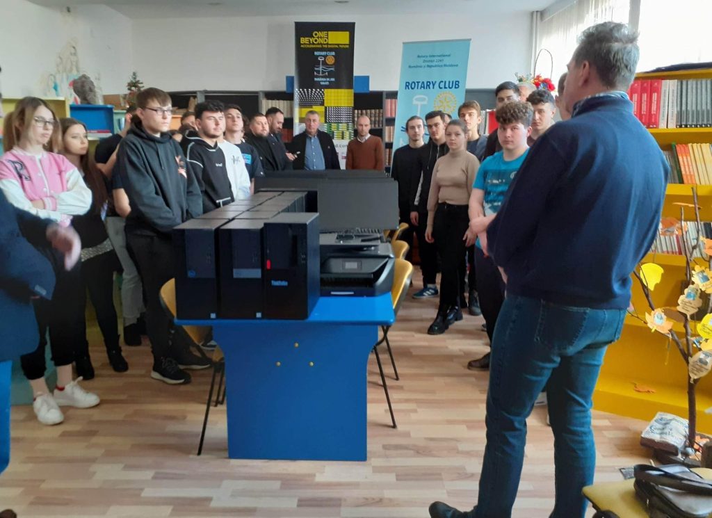 „Joi, 16 februarie 2023, o delegaţie a Clubului Rotary Galaţi a păşit pragul colegiului nostru cu o importantă donaţie de aparatură electronică Donaţia, constituită dintr-un număr de 14 calculatoare complet echipate şi o imprimantă, va fi destinată celui de-al treilea laborator de informatică al colegiului. Elevii noştri vor beneficia astfel, de o bază materială mult îmbunătăţită ce va contribui la o creştere a calităţii actului educaţional şi dobândirea unor competenţe digitale sporite. Clubul Rotary Galaţi este o asociaţie non guvernamentală care îşi propune să sprijine şi să dezvolte acţiuni în folosul comunităţii şi promovează valori precum: voluntariatul, integritatea, prietenia, respectul, înţelegerea, şi ajutorarea celor aflaţi la nevoie. Se cuvine să adresăm mulţumirile noastre pentru generoasa iniţiativă şi să asigurăm donatorii că ne vom strădui să utilizăm cu folos aparatura primită.” a transmis bibliotecara, Ignat Daniela-Cecilia.