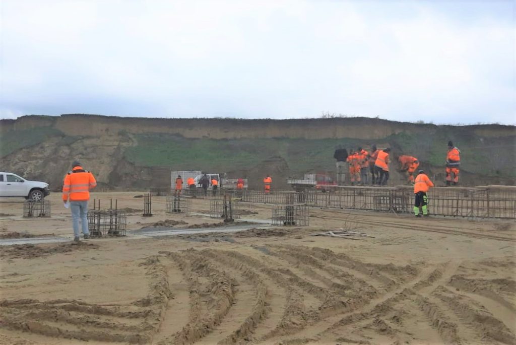 Constructorul lucrează în teren la partea de armare a fundației, unde se vor folosi aproximativ 20 de tone de fier beton. De asemenea, în același timp, în fabrică se pregătește și confecția metalică.