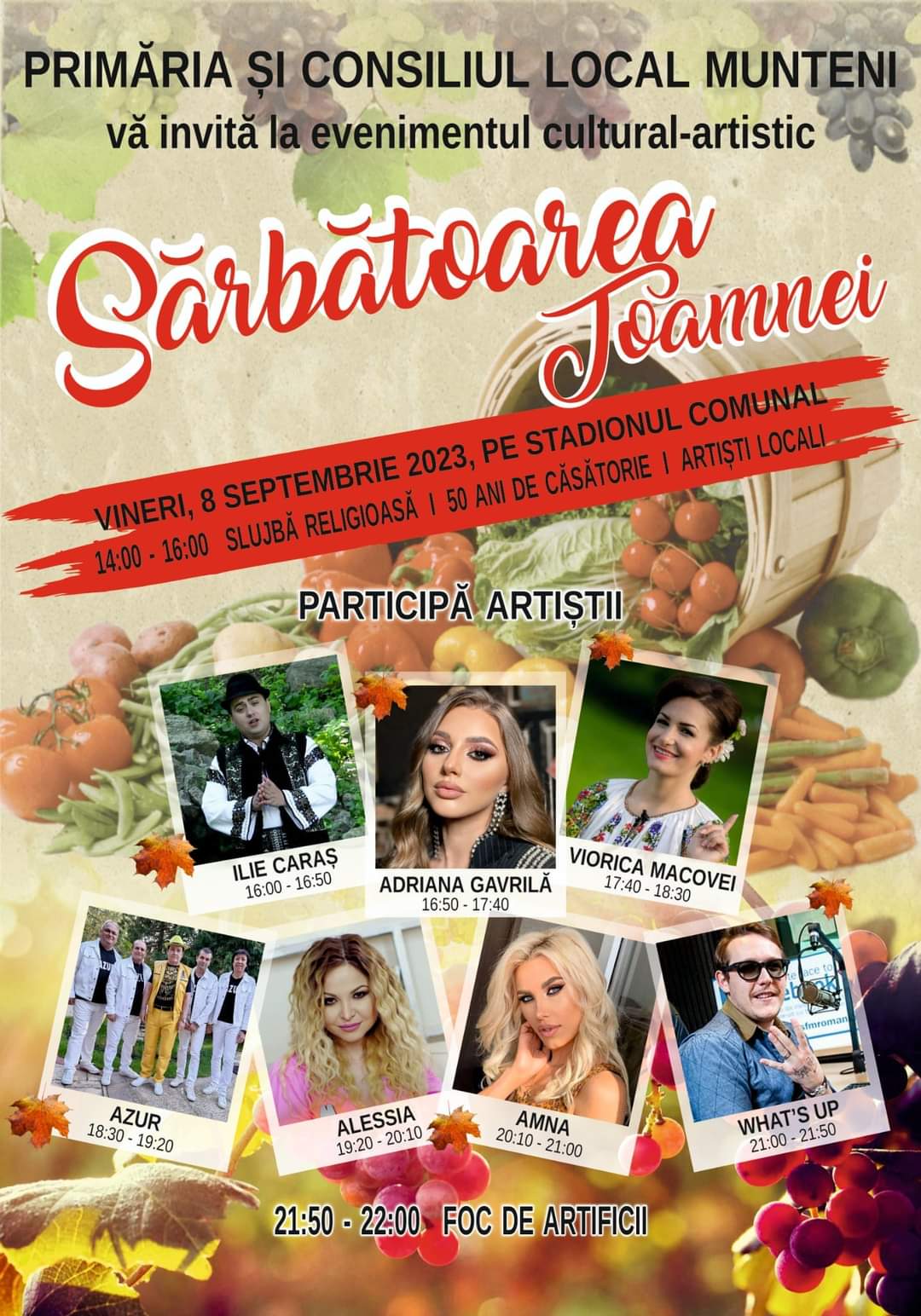 Evenimentul intitulat „Sărbătoarea Toamnei” se va desfășura pe data de 8 septembrie, de la ora 14:00, pe stadionul din comună. Potrivit primăriei, cetățenii vor avea parte de numeroase surprize și o serie de activități captivante.