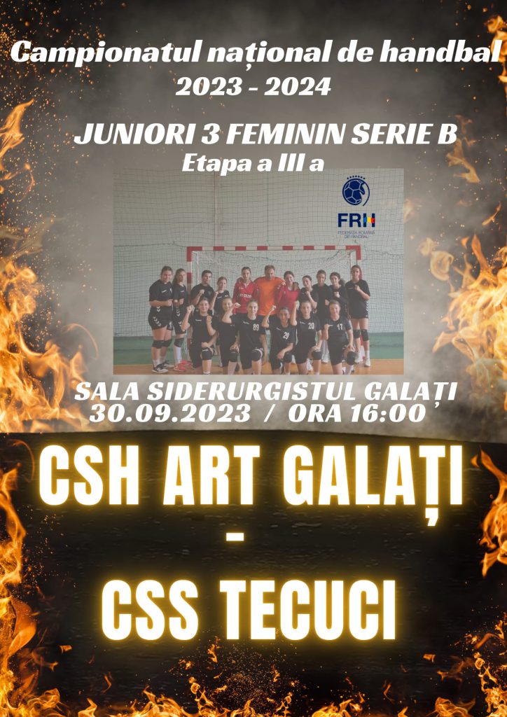 Echipa de handbal feminin legitimată în cadrul CSS Tecuci, va juca sâmbătă, 30.09.2023, începând cu orele 16:00 împotriva CSH ART Galați.