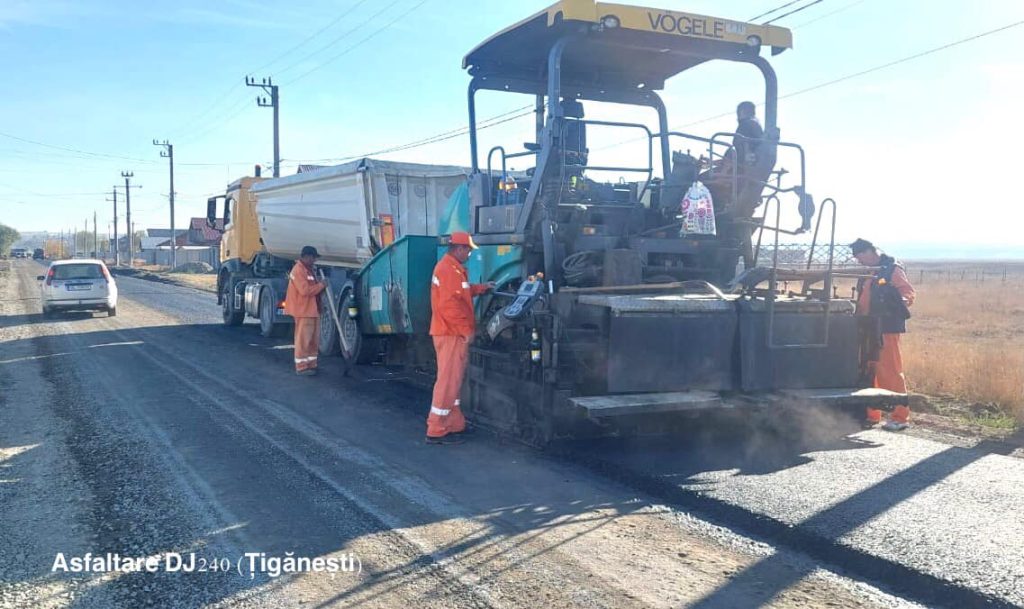 Astfel, dacă săptămâna trecută s-a turnat primul strat de asfalt pe drumul de la Ungureni (DJ240), astăzi se toarnă la Țigănești (com. Munteni), iar zilele următoare, în funcție și de vremea de afară, pe porțiunea dintre satul Gefu (comuna Ghidigeni) și intersecția cu DN24.