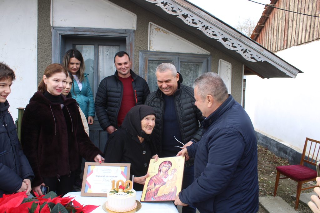 Astăzi, familia și vecinii au organizat o surpriză de neuitat pentru această centenară, alături de oameni importanți din comunitate, precum primarul comunei, Ionel Stratulat, viceprimarul Maricel Condrache și consilierii locali. În cadrul festivității, i-au fost înmânate o diplomă aniversară, o icoană, o floare simbolică și un tort delicios.