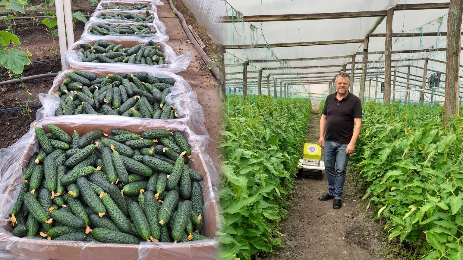 Săndel Pricope este unul dintre cei mai harnici și pricepuți legumicultori. Recoltează săptămânal câte 2-300 kg de castraveți, în funcție de vreme, și-i duce la piață. Obține un preț între 17 și 20 de lei/kg.