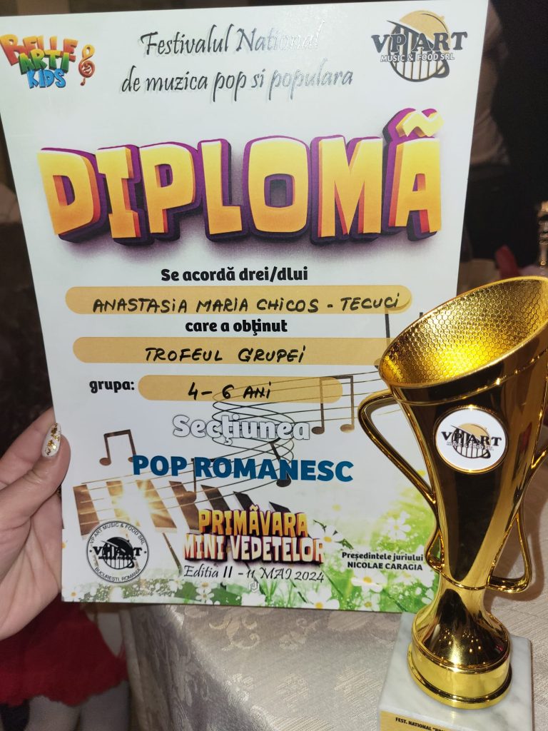 Anastasia Maria Chicos a impresionat publicul și juriul cu talentul său neînsemnat, reușind să câștige trofeul grupei la categoria 4-6 ani în sectiunea de muzică pop româneasc. Cu o voce plină de emoție și expresivitate, micuța a câștigat inimile tuturor celor prezenți.