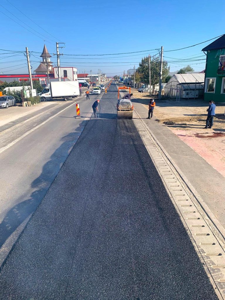 S-au turnat ultimii metri de asfalt pe drumul din zona pieței din Matca.