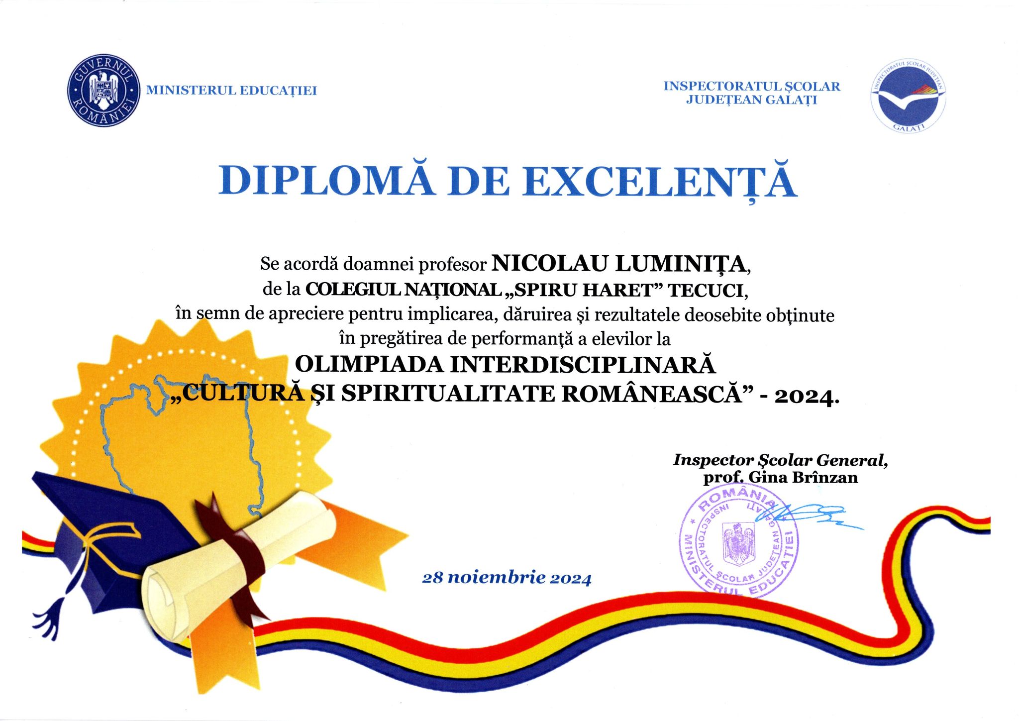 Inspectoratul Școlar Județean Galați a premiat, ieri, 28 noiembrie 2024, elevii și profesorii care au obținut rezultate remarcabile în cadrul olimpiadelor școlare naționale, precum și școlile lor de proveniență.