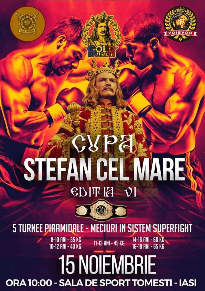 Sâmbătă, 15 noiembrie 2025, municipiul Iași a găzduit una dintre cele mai dinamice și apreciate competiții internaționale de kickboxing–K1, Cupa „Ștefan cel Mare”, destinată sportivilor amatori de toate vârstele. Evenimentul a reunit luptători bine pregătiți din întreaga țară, dar și din Republica Moldova, cu toții animați de dorința de a urca pe podium și de a cuceri mult-râvnitele centuri de campion puse în joc.